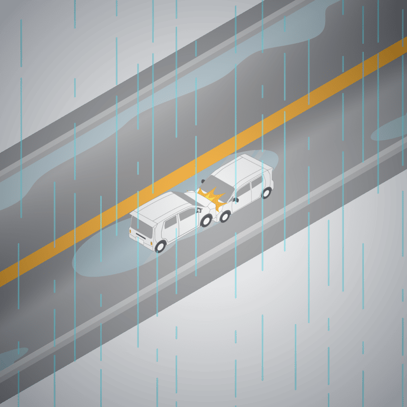 ・イラストに使用している各要素(車、背景、車、天候、信号、衝突地点など)は、代表的なイメージをイラスト化しており、色や形状等含め現実の事故の状況とは異なります。あくまで、事故のイメージとして参考までにご活用ください。