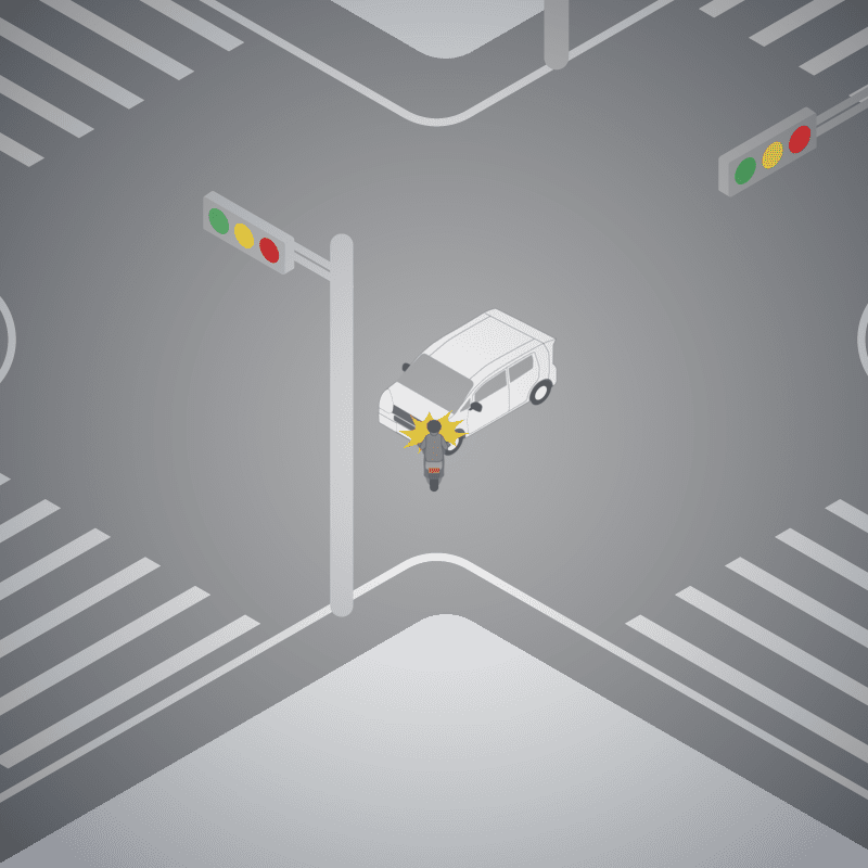 ・イラストに使用している各要素(車、背景、車、天候、信号、衝突地点など)は、代表的なイメージをイラスト化しており、色や形状等含め現実の事故の状況とは異なります。あくまで、事故のイメージとして参考までにご活用ください。