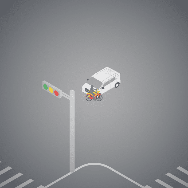 ・イラストに使用している各要素(車、背景、車、天候、信号、衝突地点など)は、代表的なイメージをイラスト化しており、色や形状等含め現実の事故の状況とは異なります。あくまで、事故のイメージとして参考までにご活用ください。
