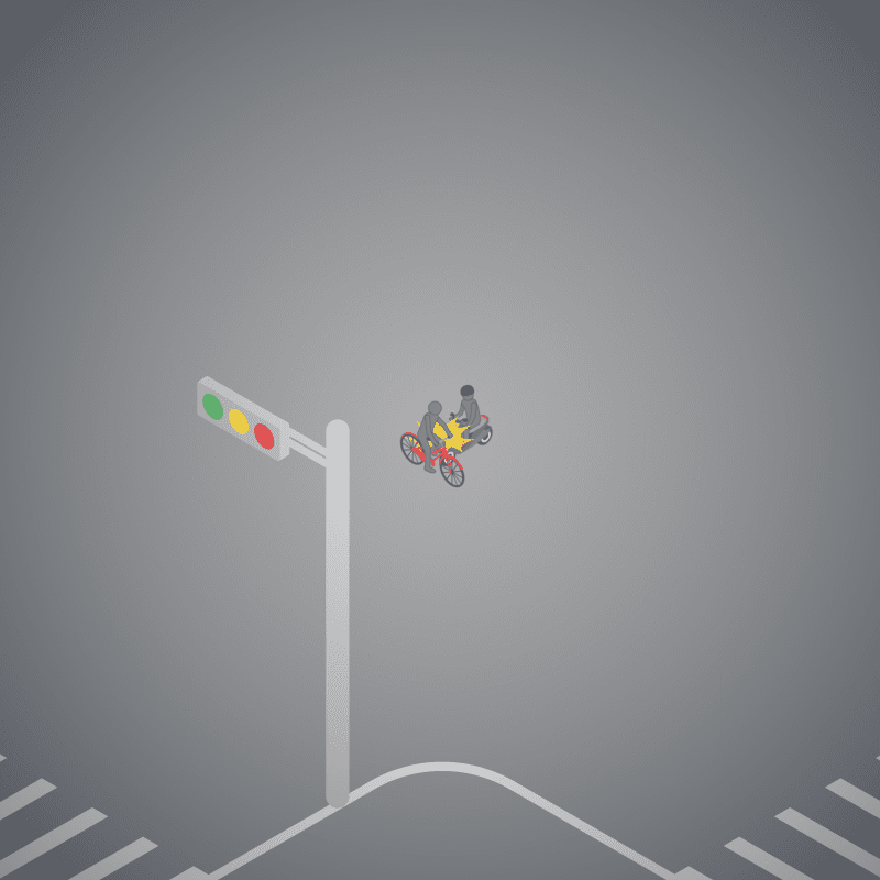 ・イラストに使用している各要素(車、背景、車、天候、信号、衝突地点など)は、代表的なイメージをイラスト化しており、色や形状等含め現実の事故の状況とは異なります。あくまで、事故のイメージとして参考までにご活用ください。