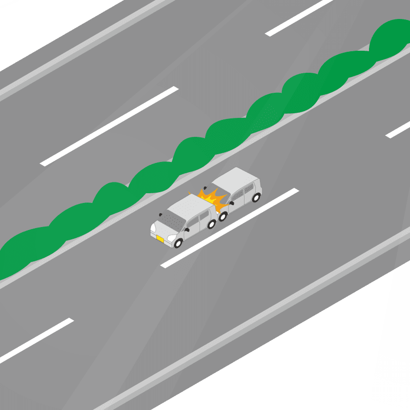 ・イラストに使用している各要素(車、背景、車、天候、信号、衝突地点など)は、代表的なイメージをイラスト化しており、色や形状等含め現実の事故の状況とは異なります。あくまで、事故のイメージとして参考までにご活用ください。