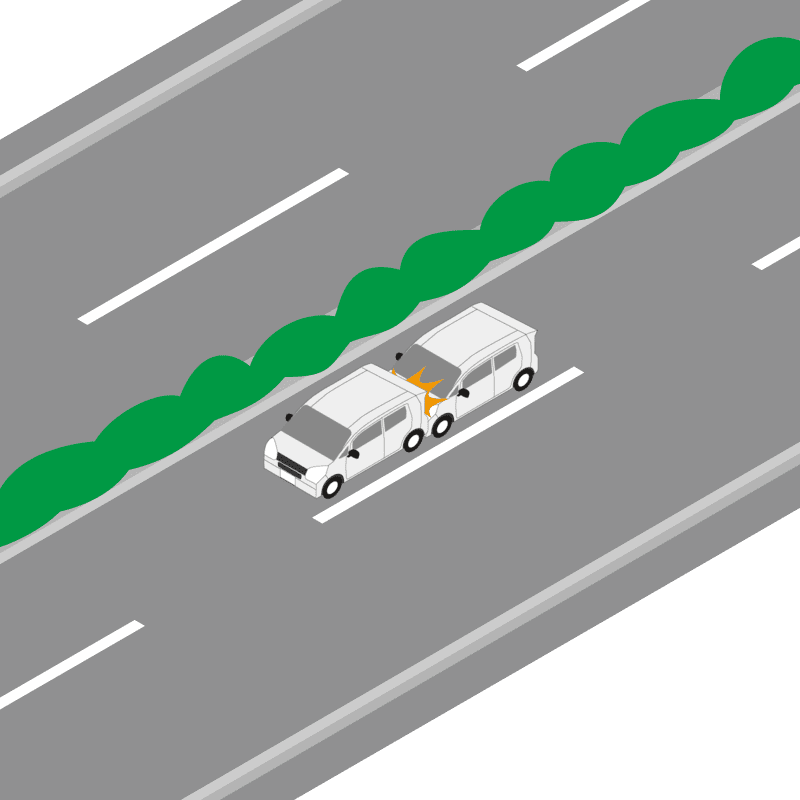 ・イラストに使用している各要素(車、背景、車、天候、信号、衝突地点など)は、代表的なイメージをイラスト化しており、色や形状等含め現実の事故の状況とは異なります。あくまで、事故のイメージとして参考までにご活用ください。