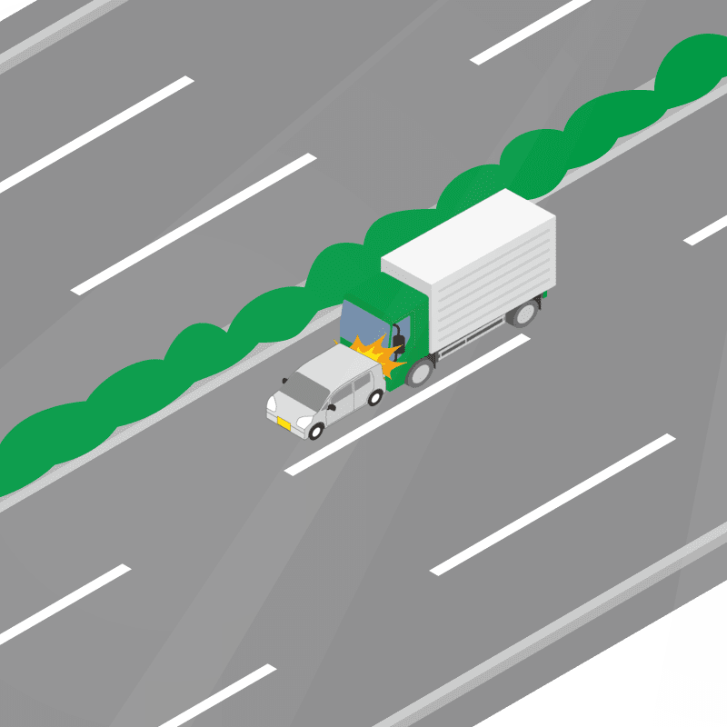 ・イラストに使用している各要素(車、背景、車、天候、信号、衝突地点など)は、代表的なイメージをイラスト化しており、色や形状等含め現実の事故の状況とは異なります。あくまで、事故のイメージとして参考までにご活用ください。