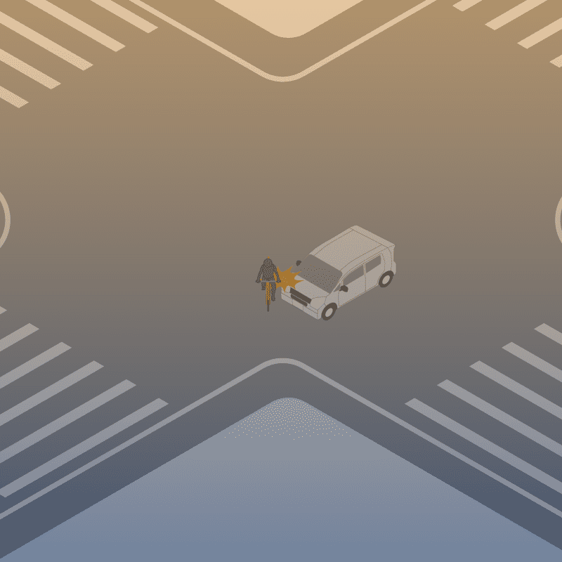 ・イラストに使用している各要素(車、背景、車、天候、信号、衝突地点など)は、代表的なイメージをイラスト化しており、色や形状等含め現実の事故の状況とは異なります。あくまで、事故のイメージとして参考までにご活用ください。