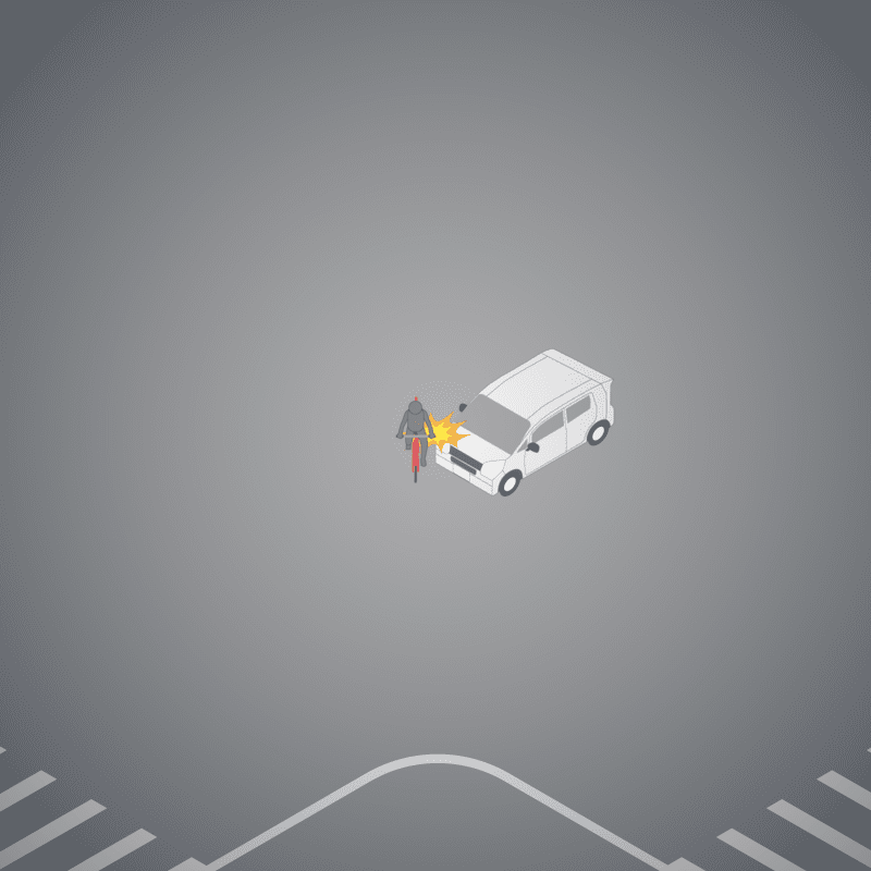 ・イラストに使用している各要素(車、背景、車、天候、信号、衝突地点など)は、代表的なイメージをイラスト化しており、色や形状等含め現実の事故の状況とは異なります。あくまで、事故のイメージとして参考までにご活用ください。