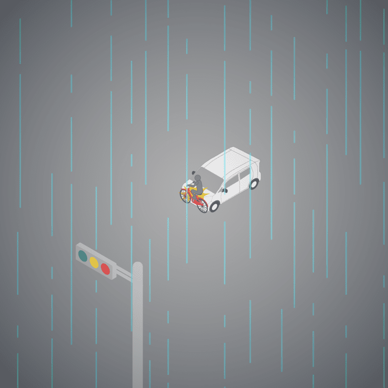 ・イラストに使用している各要素(車、背景、車、天候、信号、衝突地点など)は、代表的なイメージをイラスト化しており、色や形状等含め現実の事故の状況とは異なります。あくまで、事故のイメージとして参考までにご活用ください。