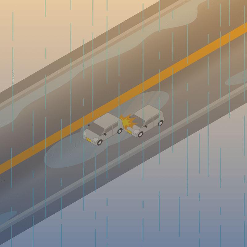 ・イラストに使用している各要素(車、背景、車、天候、信号、衝突地点など)は、代表的なイメージをイラスト化しており、色や形状等含め現実の事故の状況とは異なります。あくまで、事故のイメージとして参考までにご活用ください。