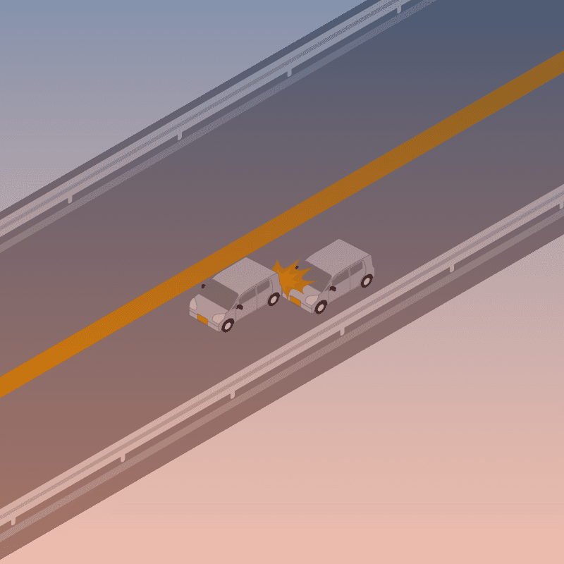 ・イラストに使用している各要素(車、背景、車、天候、信号、衝突地点など)は、代表的なイメージをイラスト化しており、色や形状等含め現実の事故の状況とは異なります。あくまで、事故のイメージとして参考までにご活用ください。