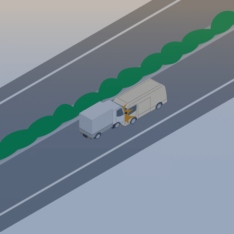 ・イラストに使用している各要素(車、背景、車、天候、信号、衝突地点など)は、代表的なイメージをイラスト化しており、色や形状等含め現実の事故の状況とは異なります。あくまで、事故のイメージとして参考までにご活用ください。