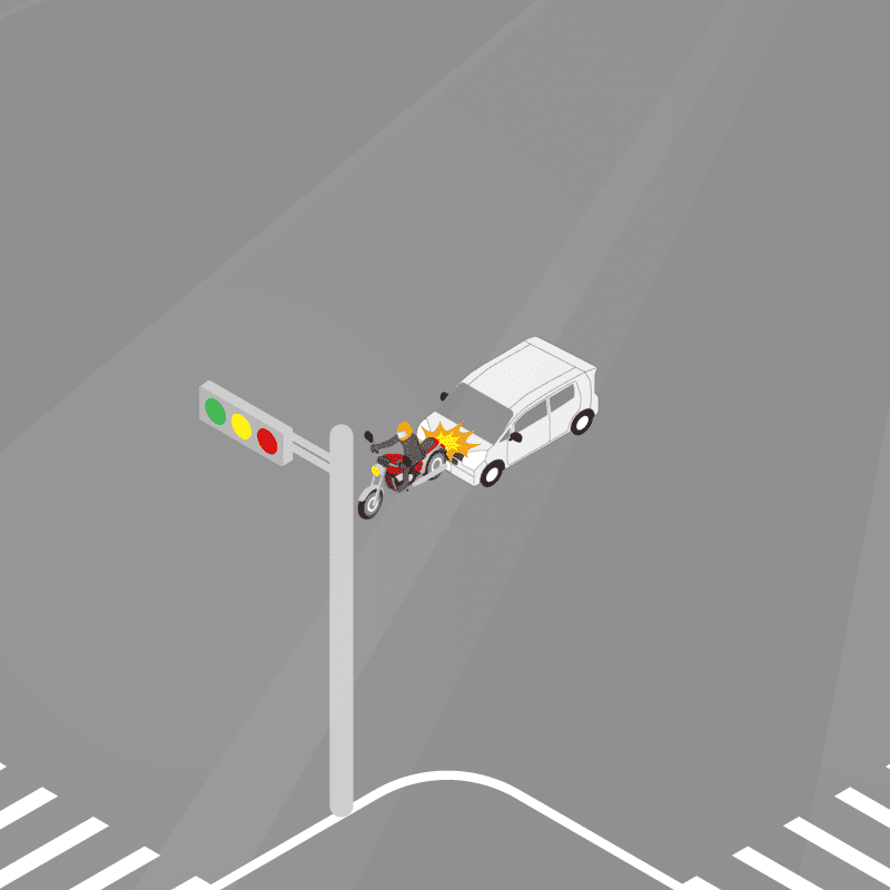 ・イラストに使用している各要素(車、背景、車、天候、信号、衝突地点など)は、代表的なイメージをイラスト化しており、色や形状等含め現実の事故の状況とは異なります。あくまで、事故のイメージとして参考までにご活用ください。
