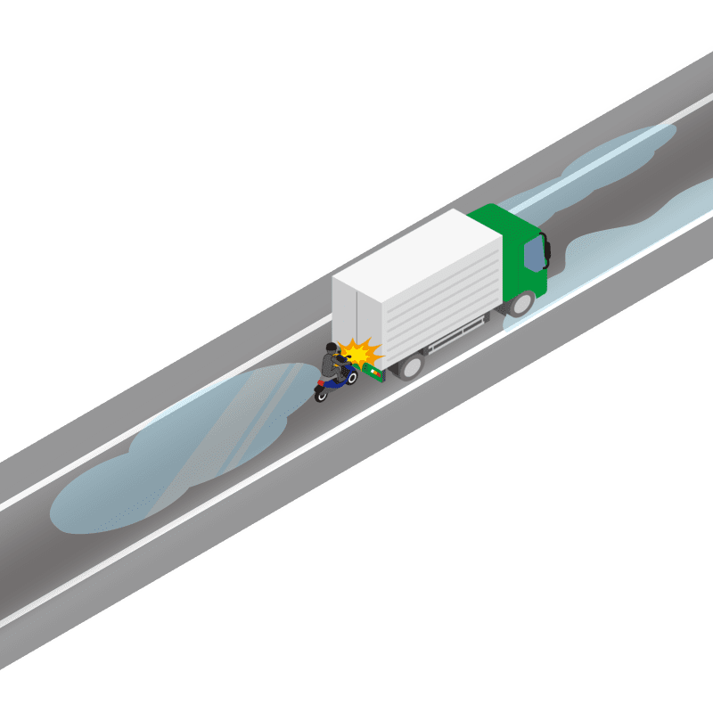 ・イラストに使用している各要素(車、背景、車、天候、信号、衝突地点など)は、代表的なイメージをイラスト化しており、色や形状等含め現実の事故の状況とは異なります。あくまで、事故のイメージとして参考までにご活用ください。