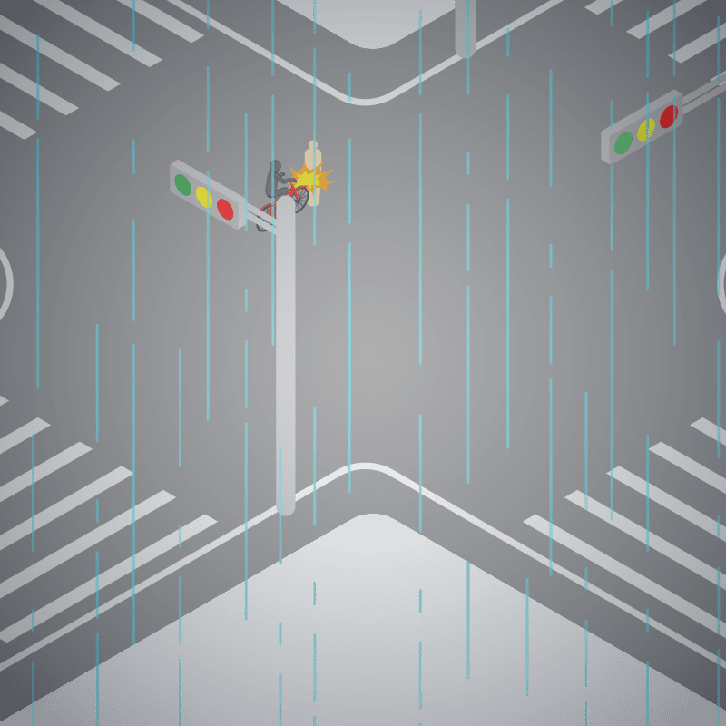 ・イラストに使用している各要素(車、背景、車、天候、信号、衝突地点など)は、代表的なイメージをイラスト化しており、色や形状等含め現実の事故の状況とは異なります。あくまで、事故のイメージとして参考までにご活用ください。