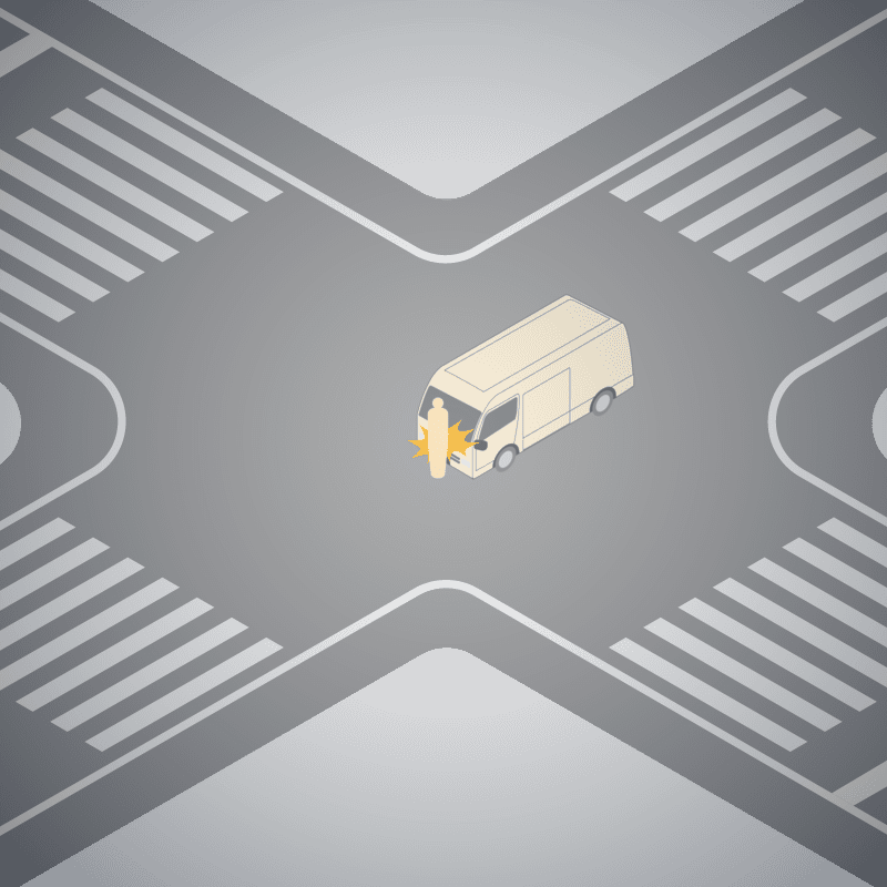 ・イラストに使用している各要素(車、背景、車、天候、信号、衝突地点など)は、代表的なイメージをイラスト化しており、色や形状等含め現実の事故の状況とは異なります。あくまで、事故のイメージとして参考までにご活用ください。