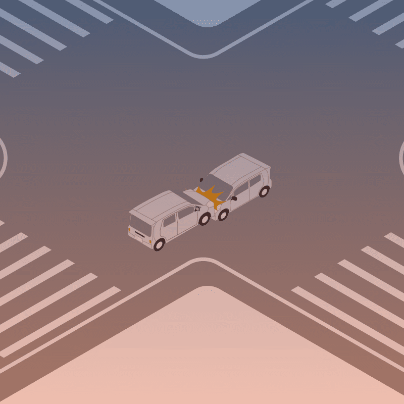 ・イラストに使用している各要素(車、背景、車、天候、信号、衝突地点など)は、代表的なイメージをイラスト化しており、色や形状等含め現実の事故の状況とは異なります。あくまで、事故のイメージとして参考までにご活用ください。