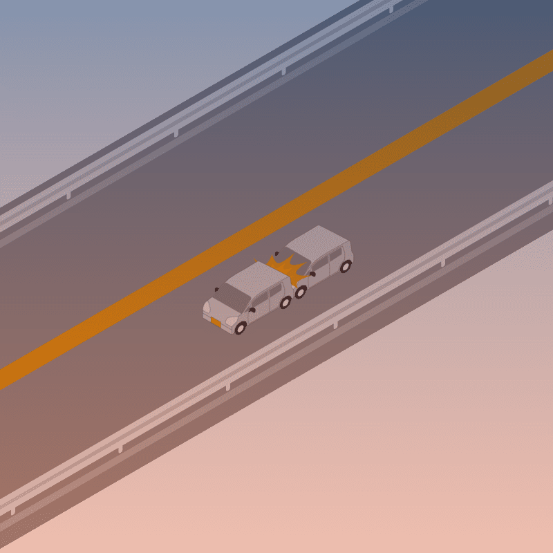 ・イラストに使用している各要素(車、背景、車、天候、信号、衝突地点など)は、代表的なイメージをイラスト化しており、色や形状等含め現実の事故の状況とは異なります。あくまで、事故のイメージとして参考までにご活用ください。