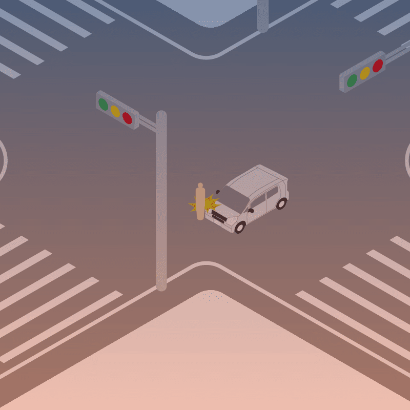 ・イラストに使用している各要素(車、背景、車、天候、信号、衝突地点など)は、代表的なイメージをイラスト化しており、色や形状等含め現実の事故の状況とは異なります。あくまで、事故のイメージとして参考までにご活用ください。