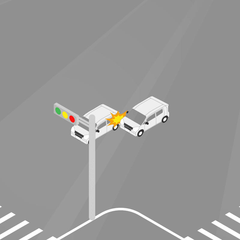 ・イラストに使用している各要素(車、背景、車、天候、信号、衝突地点など)は、代表的なイメージをイラスト化しており、色や形状等含め現実の事故の状況とは異なります。あくまで、事故のイメージとして参考までにご活用ください。