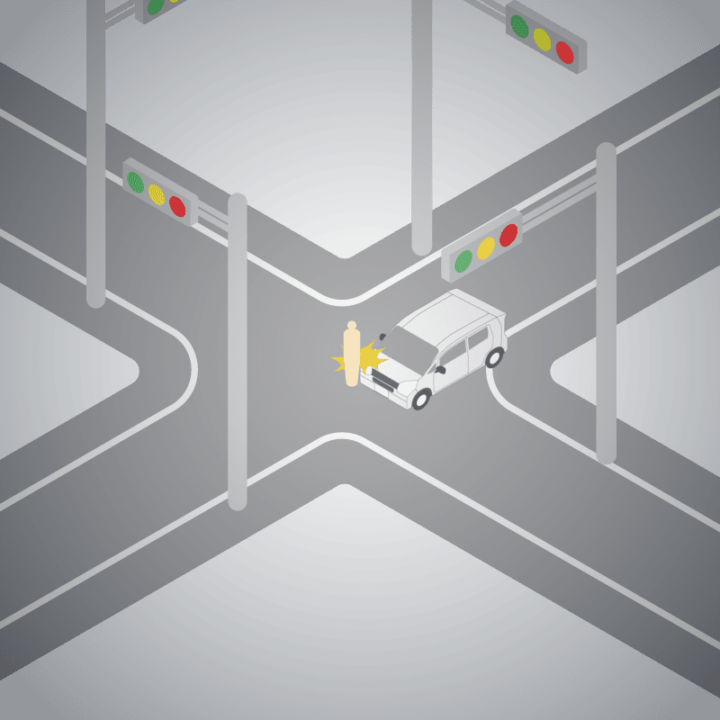 ・イラストに使用している各要素(車、背景、車、天候、信号、衝突地点など)は、代表的なイメージをイラスト化しており、色や形状等含め現実の事故の状況とは異なります。あくまで、事故のイメージとして参考までにご活用ください。