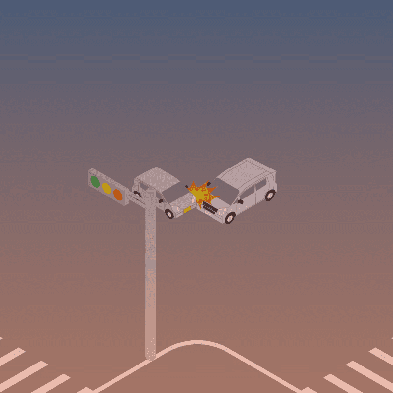 ・イラストに使用している各要素(車、背景、車、天候、信号、衝突地点など)は、代表的なイメージをイラスト化しており、色や形状等含め現実の事故の状況とは異なります。あくまで、事故のイメージとして参考までにご活用ください。
