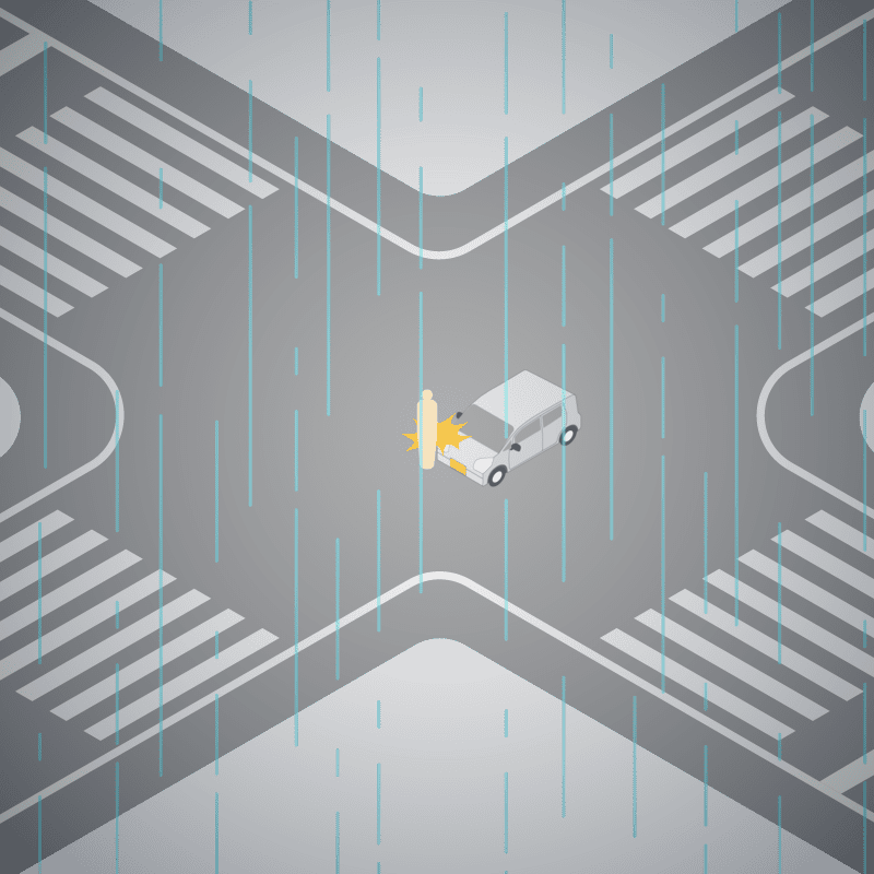 ・イラストに使用している各要素(車、背景、車、天候、信号、衝突地点など)は、代表的なイメージをイラスト化しており、色や形状等含め現実の事故の状況とは異なります。あくまで、事故のイメージとして参考までにご活用ください。