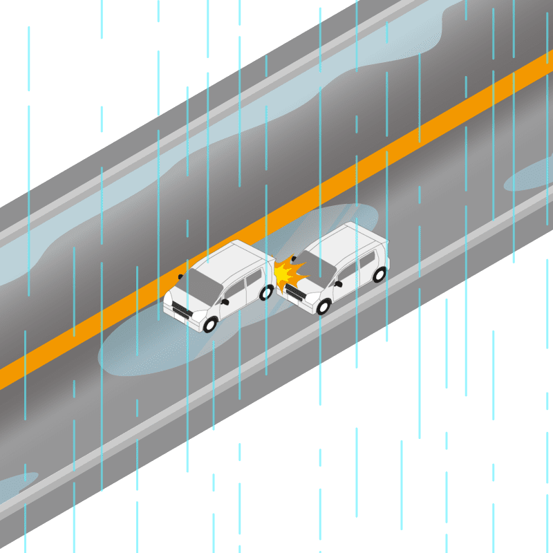 ・イラストに使用している各要素(車、背景、車、天候、信号、衝突地点など)は、代表的なイメージをイラスト化しており、色や形状等含め現実の事故の状況とは異なります。あくまで、事故のイメージとして参考までにご活用ください。
