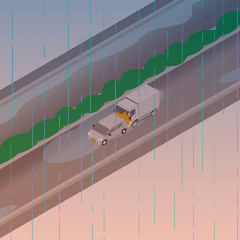 ・イラストに使用している各要素(車、背景、車、天候、信号、衝突地点など)は、代表的なイメージをイラスト化しており、色や形状等含め現実の事故の状況とは異なります。あくまで、事故のイメージとして参考までにご活用ください。