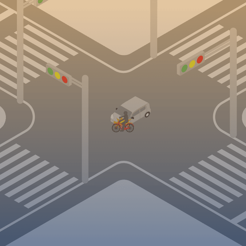 ・イラストに使用している各要素(車、背景、車、天候、信号、衝突地点など)は、代表的なイメージをイラスト化しており、色や形状等含め現実の事故の状況とは異なります。あくまで、事故のイメージとして参考までにご活用ください。