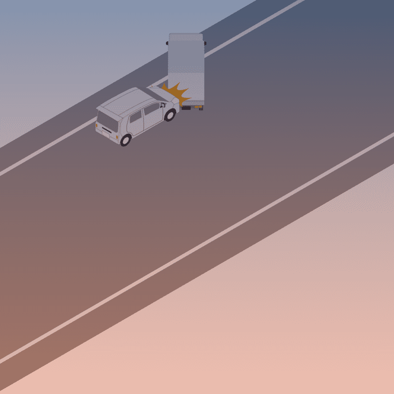 ・イラストに使用している各要素(車、背景、車、天候、信号、衝突地点など)は、代表的なイメージをイラスト化しており、色や形状等含め現実の事故の状況とは異なります。あくまで、事故のイメージとして参考までにご活用ください。