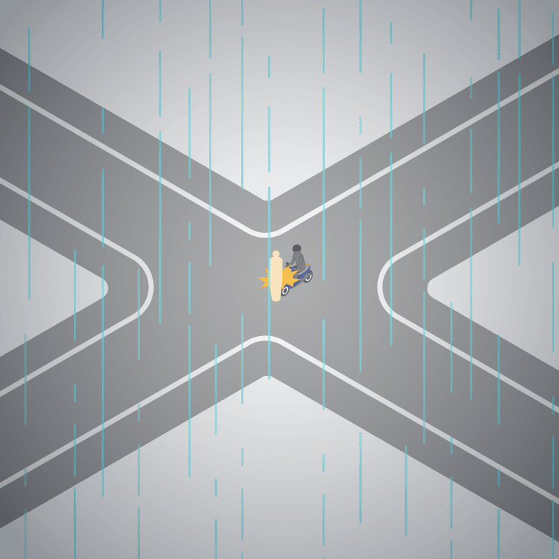 ・イラストに使用している各要素(車、背景、車、天候、信号、衝突地点など)は、代表的なイメージをイラスト化しており、色や形状等含め現実の事故の状況とは異なります。あくまで、事故のイメージとして参考までにご活用ください。