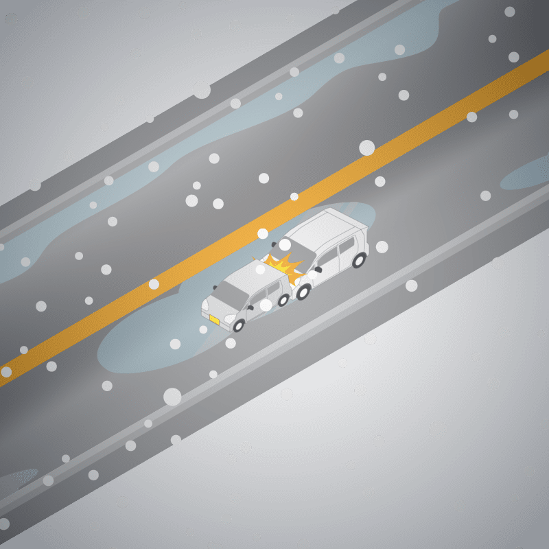 ・イラストに使用している各要素(車、背景、車、天候、信号、衝突地点など)は、代表的なイメージをイラスト化しており、色や形状等含め現実の事故の状況とは異なります。あくまで、事故のイメージとして参考までにご活用ください。