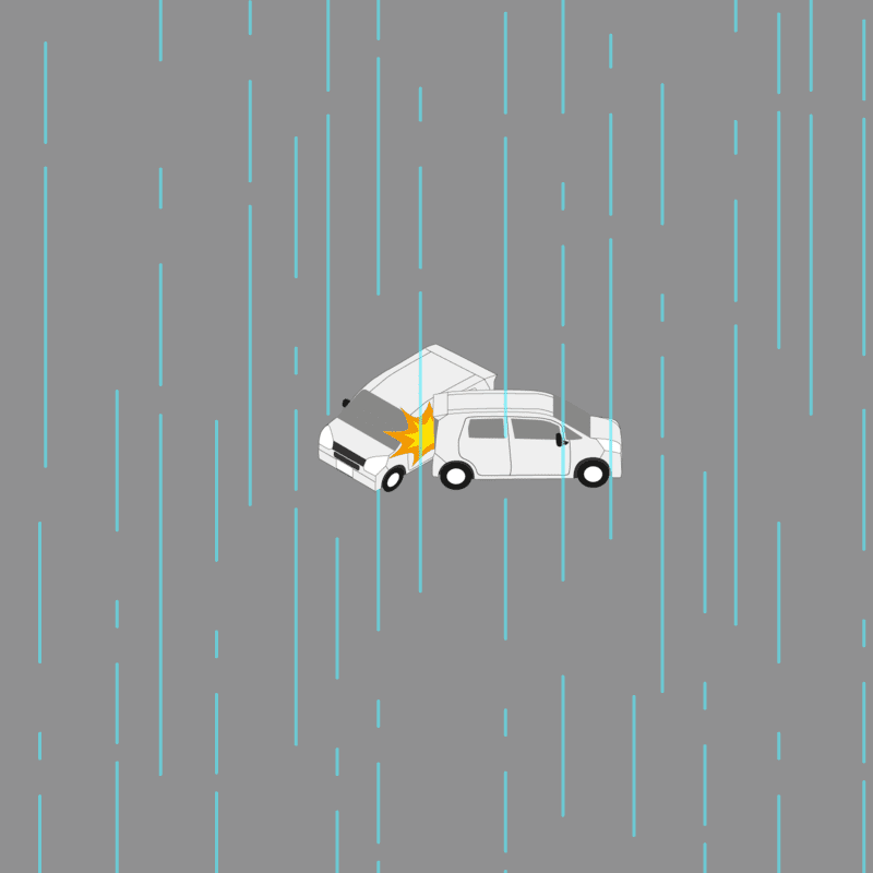 ・イラストに使用している各要素(車、背景、車、天候、信号、衝突地点など)は、代表的なイメージをイラスト化しており、色や形状等含め現実の事故の状況とは異なります。あくまで、事故のイメージとして参考までにご活用ください。