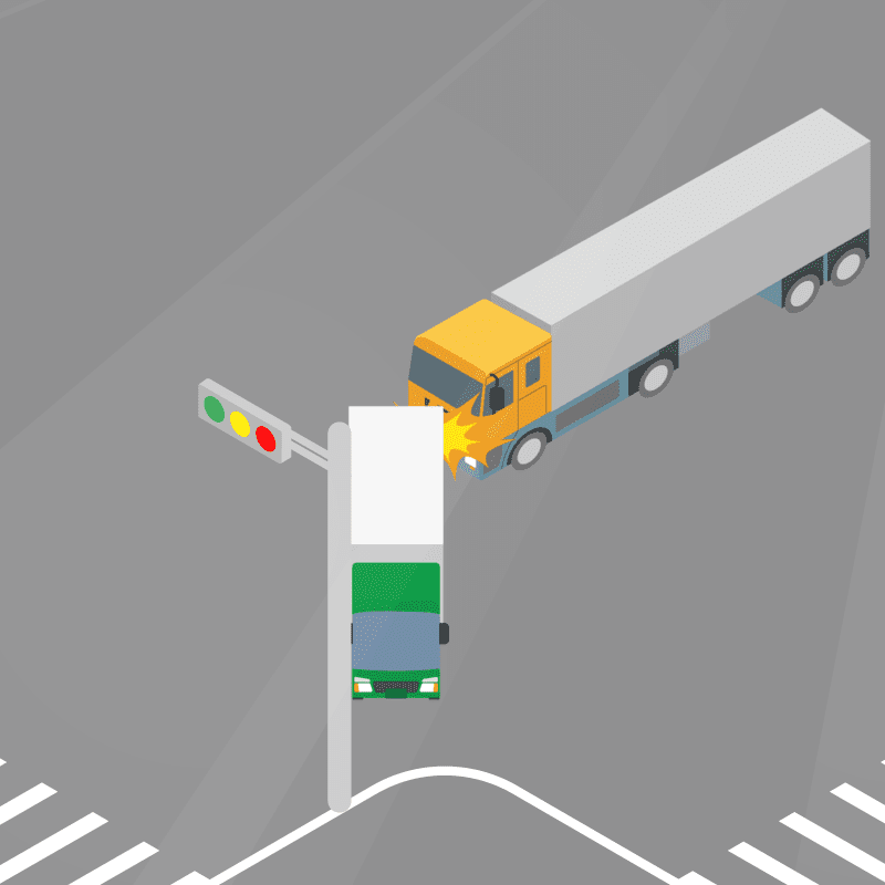 ・イラストに使用している各要素(車、背景、車、天候、信号、衝突地点など)は、代表的なイメージをイラスト化しており、色や形状等含め現実の事故の状況とは異なります。あくまで、事故のイメージとして参考までにご活用ください。
