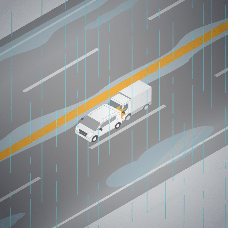 ・イラストに使用している各要素(車、背景、車、天候、信号、衝突地点など)は、代表的なイメージをイラスト化しており、色や形状等含め現実の事故の状況とは異なります。あくまで、事故のイメージとして参考までにご活用ください。