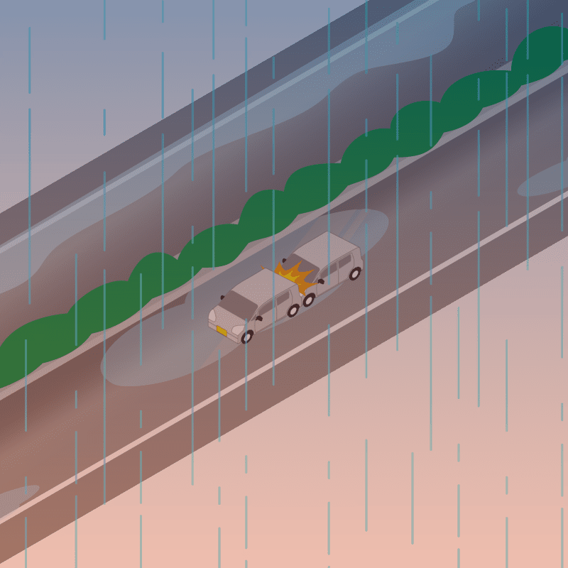 ・イラストに使用している各要素(車、背景、車、天候、信号、衝突地点など)は、代表的なイメージをイラスト化しており、色や形状等含め現実の事故の状況とは異なります。あくまで、事故のイメージとして参考までにご活用ください。