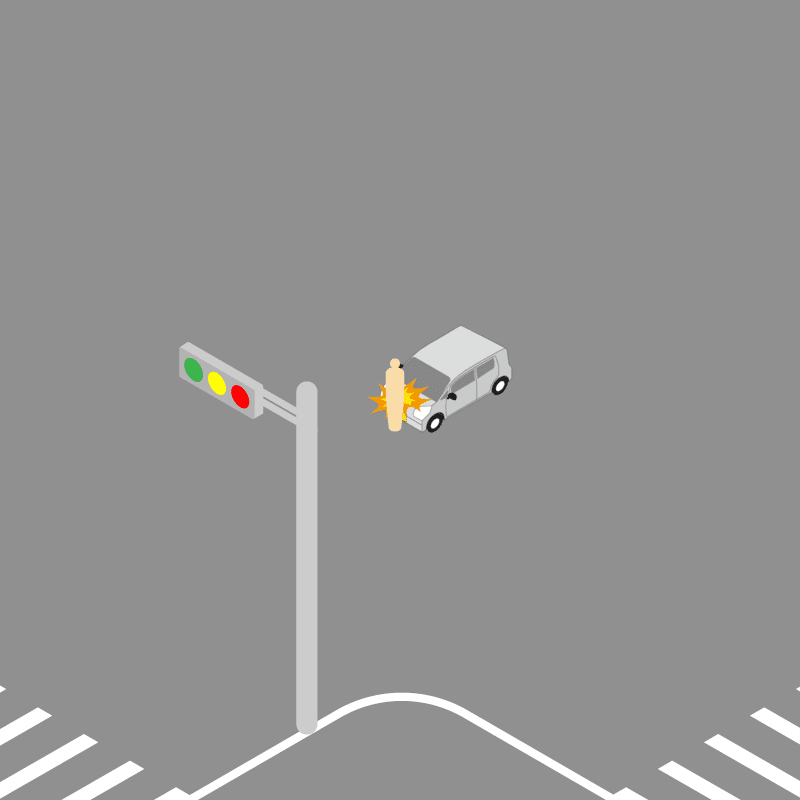 ・イラストに使用している各要素(車、背景、車、天候、信号、衝突地点など)は、代表的なイメージをイラスト化しており、色や形状等含め現実の事故の状況とは異なります。あくまで、事故のイメージとして参考までにご活用ください。