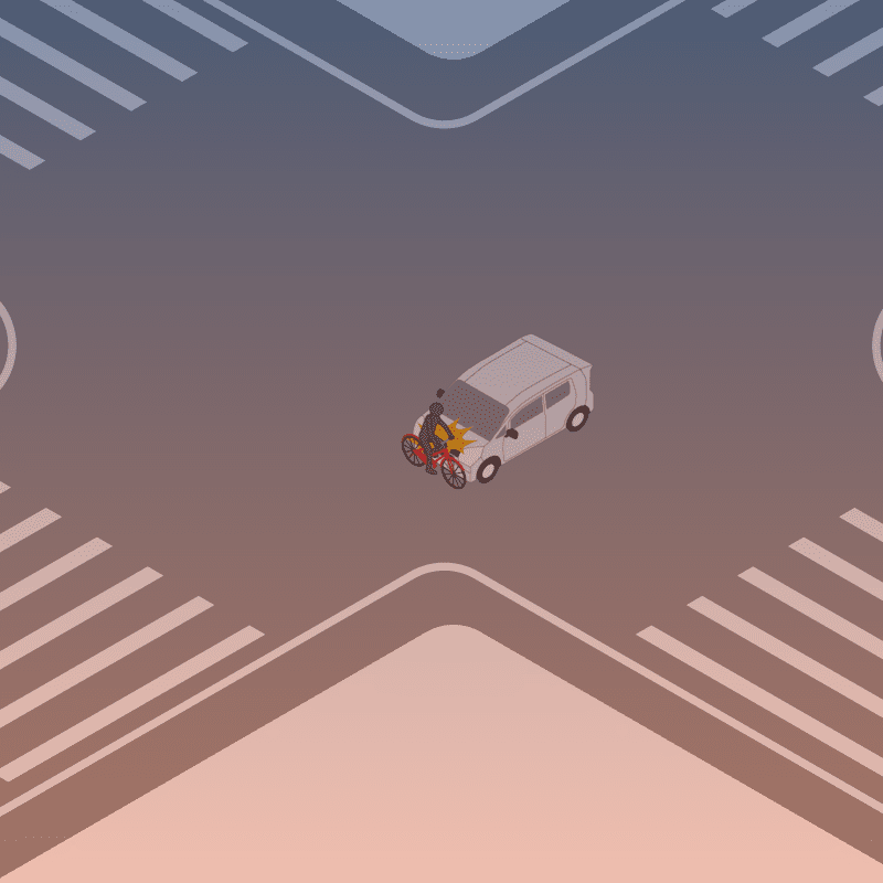 ・イラストに使用している各要素(車、背景、車、天候、信号、衝突地点など)は、代表的なイメージをイラスト化しており、色や形状等含め現実の事故の状況とは異なります。あくまで、事故のイメージとして参考までにご活用ください。