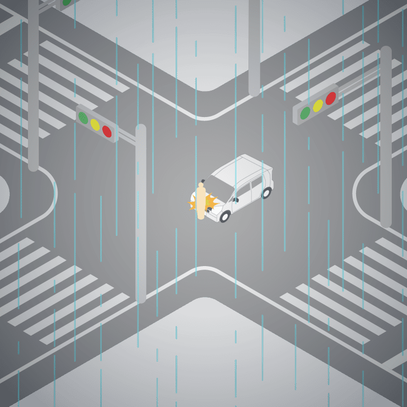 ・イラストに使用している各要素(車、背景、車、天候、信号、衝突地点など)は、代表的なイメージをイラスト化しており、色や形状等含め現実の事故の状況とは異なります。あくまで、事故のイメージとして参考までにご活用ください。