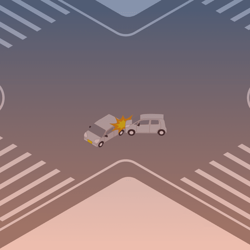 ・イラストに使用している各要素(車、背景、車、天候、信号、衝突地点など)は、代表的なイメージをイラスト化しており、色や形状等含め現実の事故の状況とは異なります。あくまで、事故のイメージとして参考までにご活用ください。