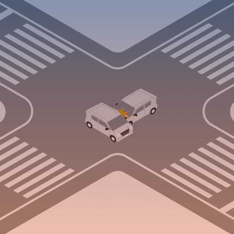 ・イラストに使用している各要素(車、背景、車、天候、信号、衝突地点など)は、代表的なイメージをイラスト化しており、色や形状等含め現実の事故の状況とは異なります。あくまで、事故のイメージとして参考までにご活用ください。