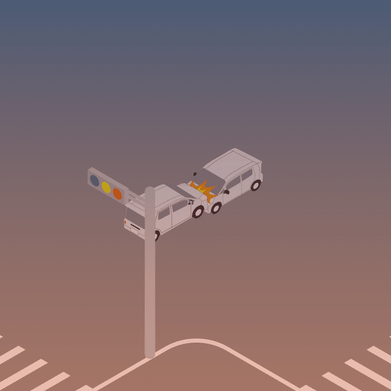 ・イラストに使用している各要素(車、背景、車、天候、信号、衝突地点など)は、代表的なイメージをイラスト化しており、色や形状等含め現実の事故の状況とは異なります。あくまで、事故のイメージとして参考までにご活用ください。