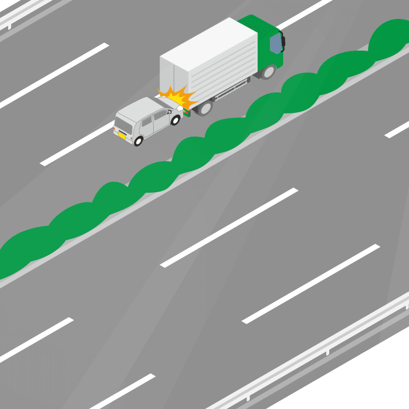 ・イラストに使用している各要素(車、背景、車、天候、信号、衝突地点など)は、代表的なイメージをイラスト化しており、色や形状等含め現実の事故の状況とは異なります。あくまで、事故のイメージとして参考までにご活用ください。