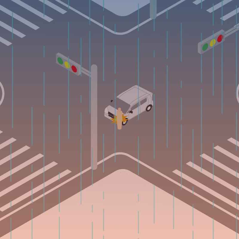 ・イラストに使用している各要素(車、背景、車、天候、信号、衝突地点など)は、代表的なイメージをイラスト化しており、色や形状等含め現実の事故の状況とは異なります。あくまで、事故のイメージとして参考までにご活用ください。