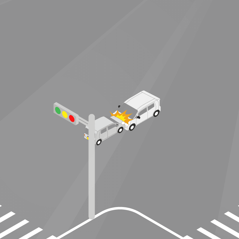 ・イラストに使用している各要素(車、背景、車、天候、信号、衝突地点など)は、代表的なイメージをイラスト化しており、色や形状等含め現実の事故の状況とは異なります。あくまで、事故のイメージとして参考までにご活用ください。