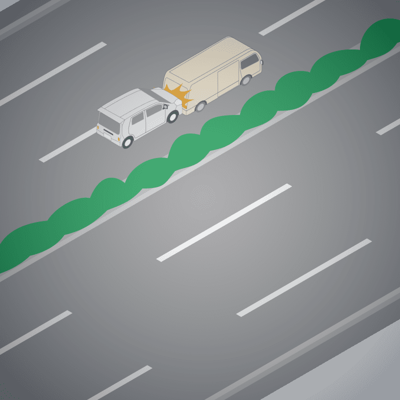 ・イラストに使用している各要素(車、背景、車、天候、信号、衝突地点など)は、代表的なイメージをイラスト化しており、色や形状等含め現実の事故の状況とは異なります。あくまで、事故のイメージとして参考までにご活用ください。