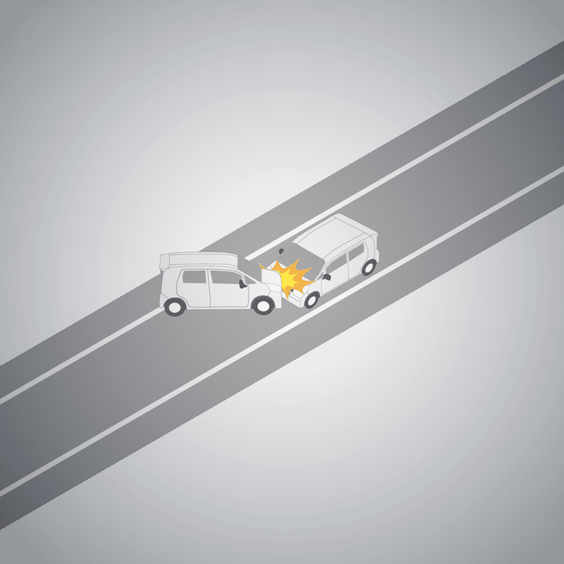 ・イラストに使用している各要素(車、背景、車、天候、信号、衝突地点など)は、代表的なイメージをイラスト化しており、色や形状等含め現実の事故の状況とは異なります。あくまで、事故のイメージとして参考までにご活用ください。