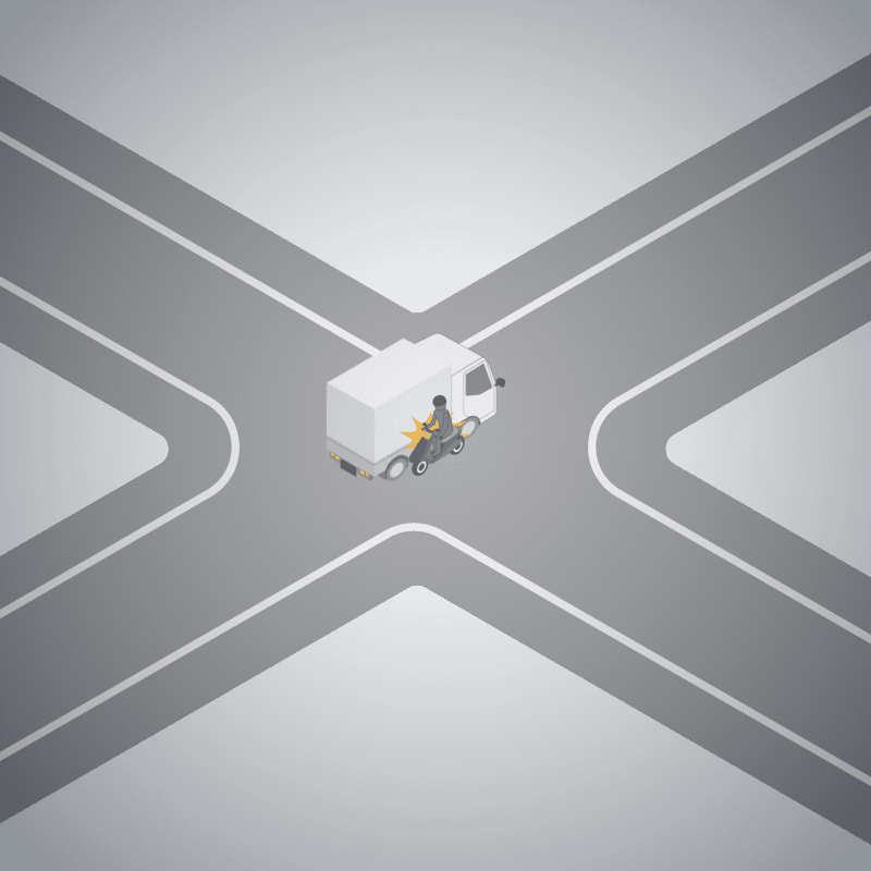 ・イラストに使用している各要素(車、背景、車、天候、信号、衝突地点など)は、代表的なイメージをイラスト化しており、色や形状等含め現実の事故の状況とは異なります。あくまで、事故のイメージとして参考までにご活用ください。