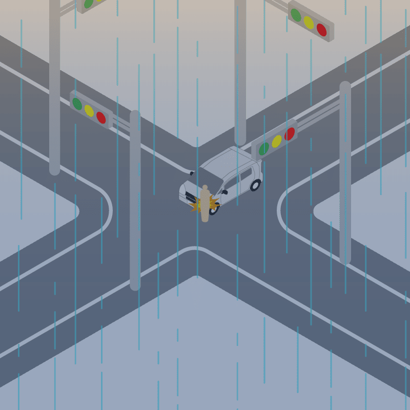 ・イラストに使用している各要素(車、背景、車、天候、信号、衝突地点など)は、代表的なイメージをイラスト化しており、色や形状等含め現実の事故の状況とは異なります。あくまで、事故のイメージとして参考までにご活用ください。