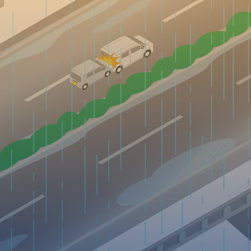 ・イラストに使用している各要素(車、背景、車、天候、信号、衝突地点など)は、代表的なイメージをイラスト化しており、色や形状等含め現実の事故の状況とは異なります。あくまで、事故のイメージとして参考までにご活用ください。