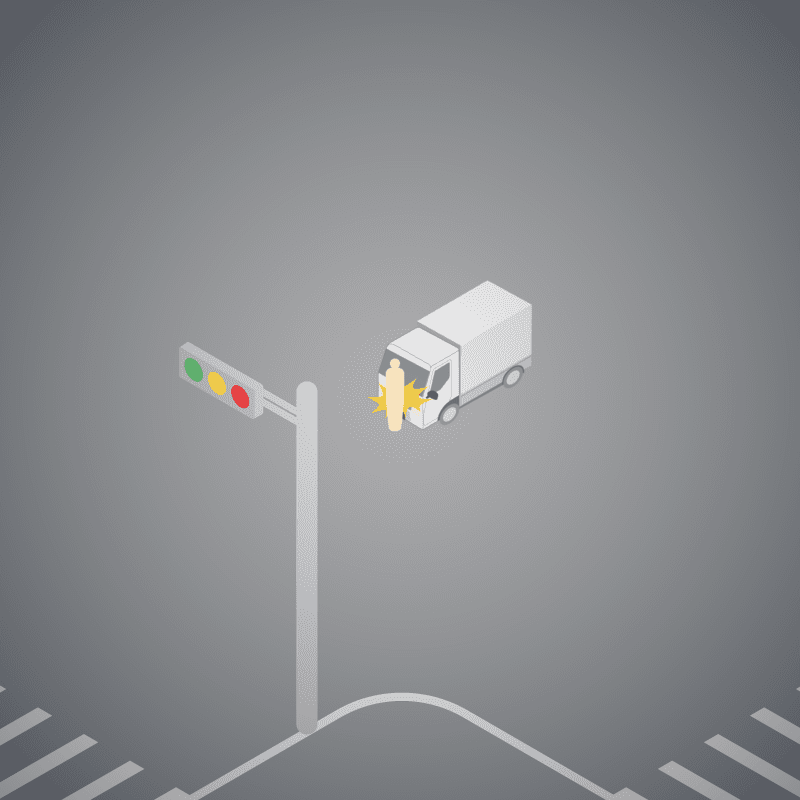 ・イラストに使用している各要素(車、背景、車、天候、信号、衝突地点など)は、代表的なイメージをイラスト化しており、色や形状等含め現実の事故の状況とは異なります。あくまで、事故のイメージとして参考までにご活用ください。