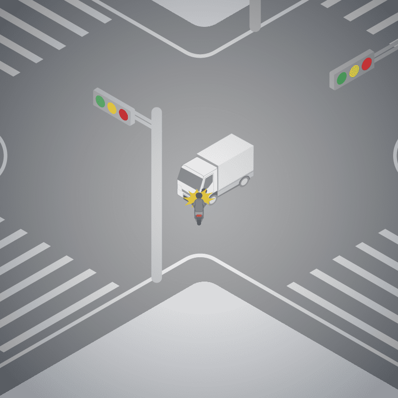 ・イラストに使用している各要素(車、背景、車、天候、信号、衝突地点など)は、代表的なイメージをイラスト化しており、色や形状等含め現実の事故の状況とは異なります。あくまで、事故のイメージとして参考までにご活用ください。